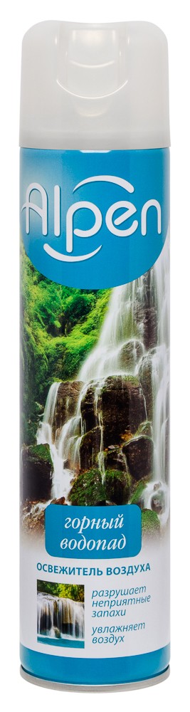 Освежитель воздуха ALPEN Горный водопад – это прорыв на рынке освежителей воздуха. Он эффективно устраняет неприятные запахи. В отличии от других освежителей, не содержат бутан, который подавляет парфюмерную композицию, придавая ей искусственный запах. Освежитель воздуха не содержит химического газа. Наполнен исключительно чистым воздухом и ароматом.