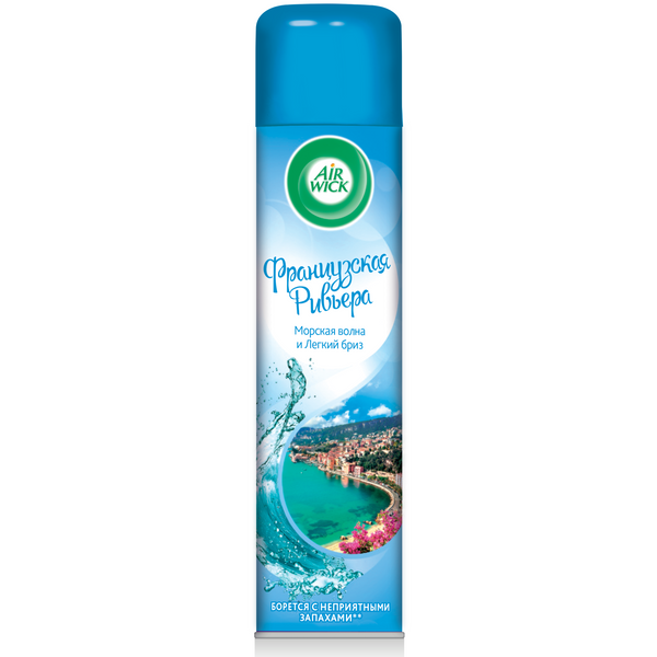 Аэрозоль-освежитель воздуха Air Wick Французская Ривьера из новой коллекции Ароматы мира эффективно борется с неприятными запахами, оставляя ощущение свежести морских волн и легкий бриз Французской Ривьеры.