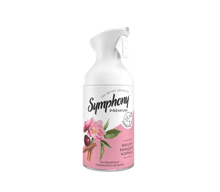 Symphony интерьерный парфюм освежитель воздуха вишня миндаль корица в аэрозольной упаковке 250 мл