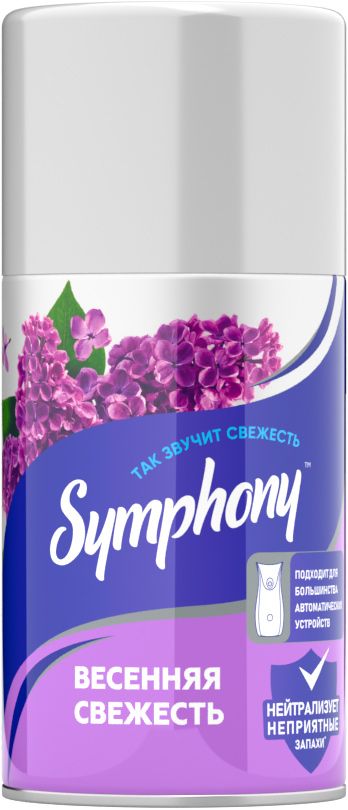 Сменный баллон для автоматических освежителей воздуха SYMPHONY подходит для всех автоматических устройств. Обеспечивает свежесть до 60 дней. Ионы серебра быстро и эффективно блокируют молекулы неприятного запаха, замещая его природными ароматами весенней свежести. Сухое распыление позволяет избежать образования капель, пятен на стенах и полу. Экономичен и удобен в использовании. SYMPHONY – это новое звучание вашего дома: ароматы, подобно чудесной музыке, раскрываются нота за нотой, погружая в мир свежести, гармонии и уюта.