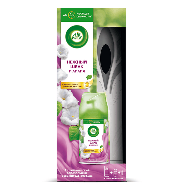 Air Wick автоматический распылитель освежителя воздуха с освежителем воздуха в сменном аэрозольном баллоне нежный шелк и лилия 250 мл