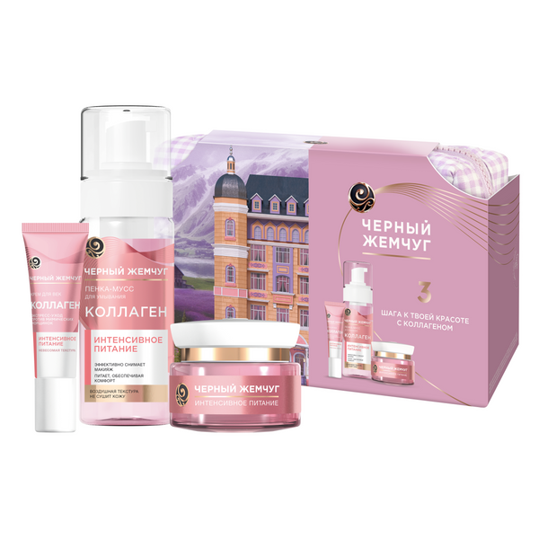 Черный жемчуг 3 шага к красоте с коллагеном 2024 пенка мусс 150 мл+дневной крем 46 мл+крем для век 17 мл