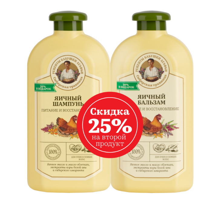 Яичный желток питает кожу головы и волосы смягчает. Облепиховое масло волосяные луковицы пробуждает, витаминами их насыщает и структуру локонов восстанавливает. Кора белой ивы росту и укреплению способствует, а сибирский амарант лечит ломкие волосы, не даёт им обезвоживаться и дарит блеск. Применяй яичный шампунь регулярно и увидишь – были волосы сухие, ломкие, а стали упругие, шелковистые да блестящие. Помочь сухим и ломким волосам может испытанное средство – яичный желток и масло! И то, и другое в бальзаме «Питание и восстановление» содержится. Яичный желток помогает волосам сохранять влагу, облегчает расчёсывание, придаёт мягкость. Облепиховое масло витаминами насыщает, делает локоны блестящими. Кора белой ивы укреплению способствует, а сибирский амарант лечит ломкие волосы, не даёт им обезвоживаться, дарит блеск. Применяй яичный бальзам регулярно после использования шампуня, и скоро убедишься в силе яичного масла – волосы сухие и ломкие станут упругие, шелковистые да блестящие.
