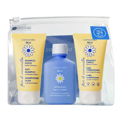 Camomilla Blu travel набор для чувствительной кожи шампунь кондиционер гель для умывания лица и тела
