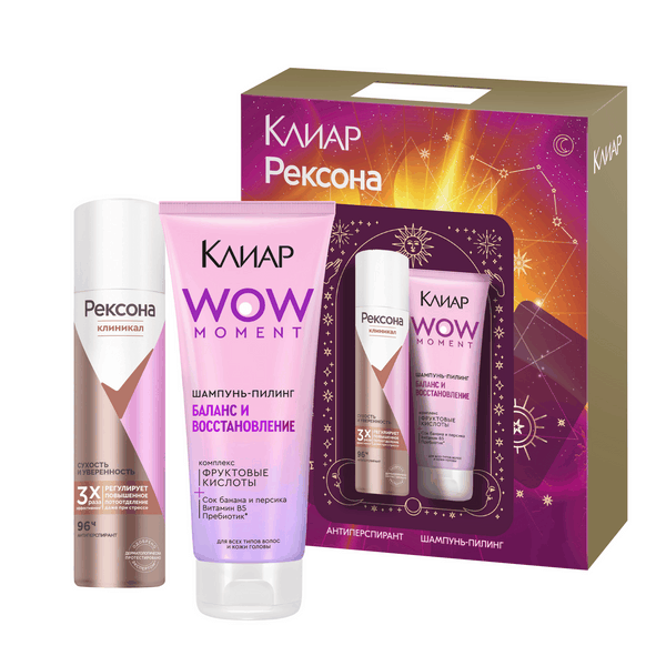 ПН Рексона Клиар wow дезодорант антиперспирант 150 мл шампунь пилинг 200 мл