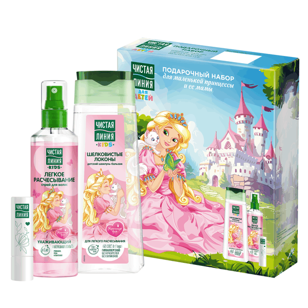 ПН Чистая линия уход маленькой принцессы шампунь бальзам 240 мл спрей для волос 160 мл бальзам для губ 4 г