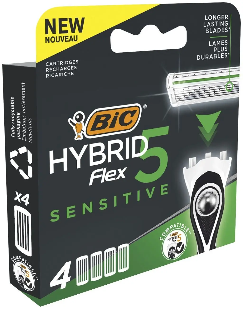 Bic hybrid 5 flex sensitive сменные кассеты для мужской бритвы уп 4 шт