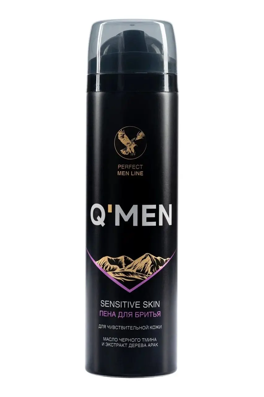 Q’men пена для бритья для чувствительной кожи с экстрактом дерева арак и маслом черного тмина, 240 мл