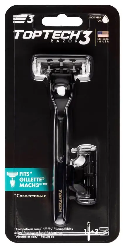 top tech razor 3 мужская бритва 1 станок+ 2 сменные кассеты совместима с gillette mach3