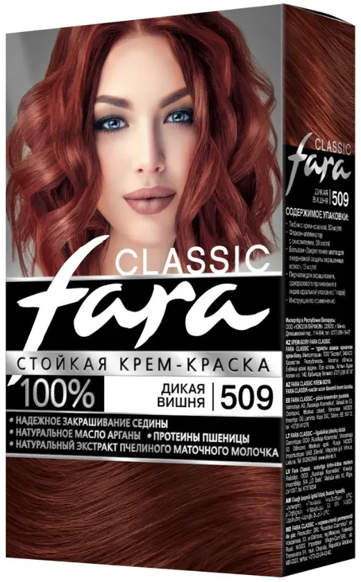 Fara Classic – СТОЙКАЯ крем-краска для волос. Активная формула краски с кондиционирующим компонентом способствует более глубокому проникновению цветовых пигментов в структуру волос, обеспечивая длительную защиту цвета. Протеины пшеницы восстанавливают структуру волос, делая их здоровыми и блестящими. Бальзам «Закрепление цвета» с натуральным экстрактом пчелиного маточного молочка и 100% натуральным маслом Арганы питает окрашенные волосы изнутри и восстанавливает их по всей длине. НАДЕЖНОЕ ЗАКРАШИВАНИЕ СЕДИНЫ СТОЙКИЙ, СИЯЮЩИЙ, ЯРКИЙ ЦВЕТ МЯГКИЕ И ЭЛАСТИЧНЫЕ ВОЛОСЫ ПОСЛЕ ОКРАШИВАНИЯ.