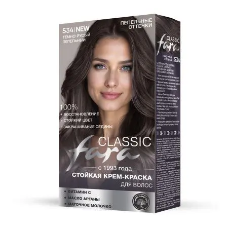 Fara Classic стойкая крем краска для волос 534 темно русый пепельный 6.1