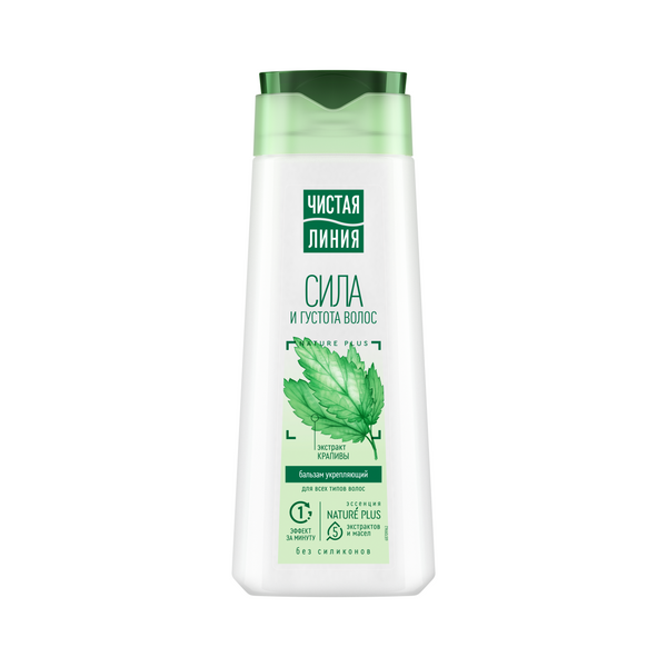 Встречайте любимый бальзам-ополаскиватель с усиленной формулой1 и в обновленном дизайне! Позвольте своим волосам стать снова естественно красивыми, густыми и крепкими с укрепляющей серией продуктов от бренда Чистая Линия. Бальзам-ополаскиватель Крапива не содержит силиконов и на 97% состоит из компонентов натурального происхождения. Отлично подходит для всех типов волос. Эссенция Nature Plus – НЕЙЧЕ ПЛЮС содержит 5 тщательно отобранных по своим свойствам экстрактов и масел, предупреждает выпадение, питает и защищает волосы от повреждений. - Экстракт вербены обладает успокаивающим, общеукрепляющим действием. - Шалфей способствует питанию кожи головы, укреплению и росту волос*. - Экстракт шиповника, богатый витаминами и известный своими восстанавливающими свойствами, стимулирует рост волос*. - Масло льна питает, смягчает кожу и волосы. - Миндальное масло восстанавливает секрецию и придает здоровый блеск. - Крапива укрепляет волосы по всей длине. - Молочко овса разглаживает и восстанавливает их структуру без эффекта жирности и утяжеления.