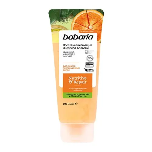 Восстанавливающий экспресс бальзам для волос Babaria с разглаживающим эффектом. Средство смягчает волосы, облегчает укладку и расчесывание. В основе состава натуральные, питательные ингредиенты. Экстракт испанского апельсина дарит локонам силу, упругость, стимулирует кровообращение и оказывает себорегулирующее действие на кожу головы. Семена чиа интенсивно питают полезными веществами. Масло марулы восстанавливает поврежденную структуру прядей, защищает их от воздействий окружающей среды, увлажняет.