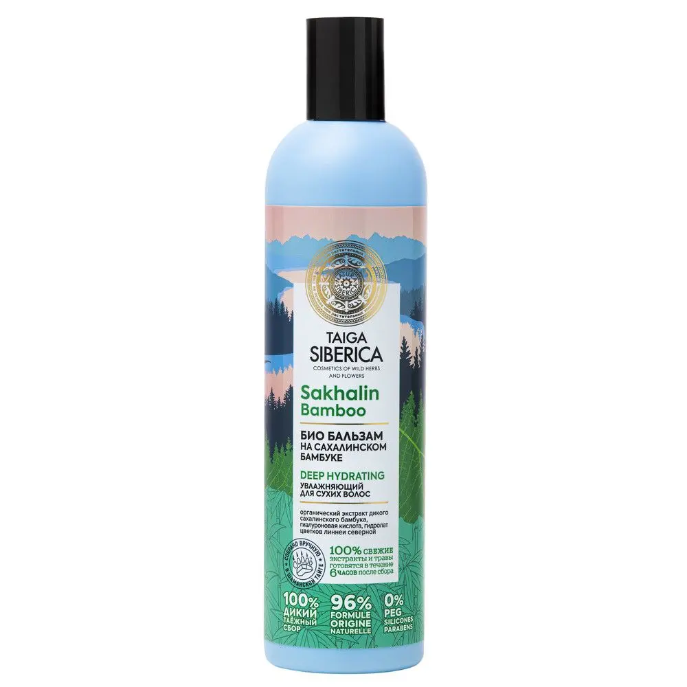 Био бальзам увлажняющий для сухих волос DEEP HYDRATING Sakhalin Bamboo Глубоко проникает в структуру волос, уменьшая ломкость и защищая от внешних повреждений. Придает мягкость и блеск. Максимальное увлажнение по всей длине Гладкость и ультра сияние Сильные и упругие волосы САХАЛИНСКИЙ БАМБУК — ТАЕЖНЫЙ ИСТОЧНИК УВЛАЖНЕНИЯ. Дикий сахалинский бамбук содержит высокую концентрацию кремниевой кислоты. Она способствует укреплению и увлажнению волос, придает им живой блеск и сияние, облегчает расчесывание. Гиалуроновая кислота глубоко проникает в структуру волоса, удерживая влагу. Гидролат линнеи северной содержит природные антиоксиданты – флавоноиды, которые значительно снижают риск повреждения волос в результате воздействия агрессивных факторов окружающей среды, придают мягкость и гладкость.