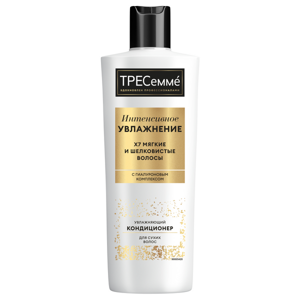 Кондиционер для волос TRESemmé Rich Moisture — новинка для глубокого увлажнения волос, вдохновленные профессиональные средства. Формула кондиционера обогащена гиалуроновым комплексом и оказывает видимый результат — Х7, интенсивное увлажнение и питание! Верните жизненную силу сухим, обезвоженным волосам вместе с TRESemmé: - Кондиционер для женских волос глубоко питает и увлажняет пряди. - Благодаря средству кремовой текстуры легко растушевывается, обволакивает каждый волосок и легко смывается. - Кондиционер способствует расчесыванию и дарит волосам ослепительный блеск. Средство подходит для поврежденных волос, которые стали истонченными и ломкими из-за самых сильных укладок и окрашивания. Также его можно использовать для дополнительного ухода за нормальными волосами.