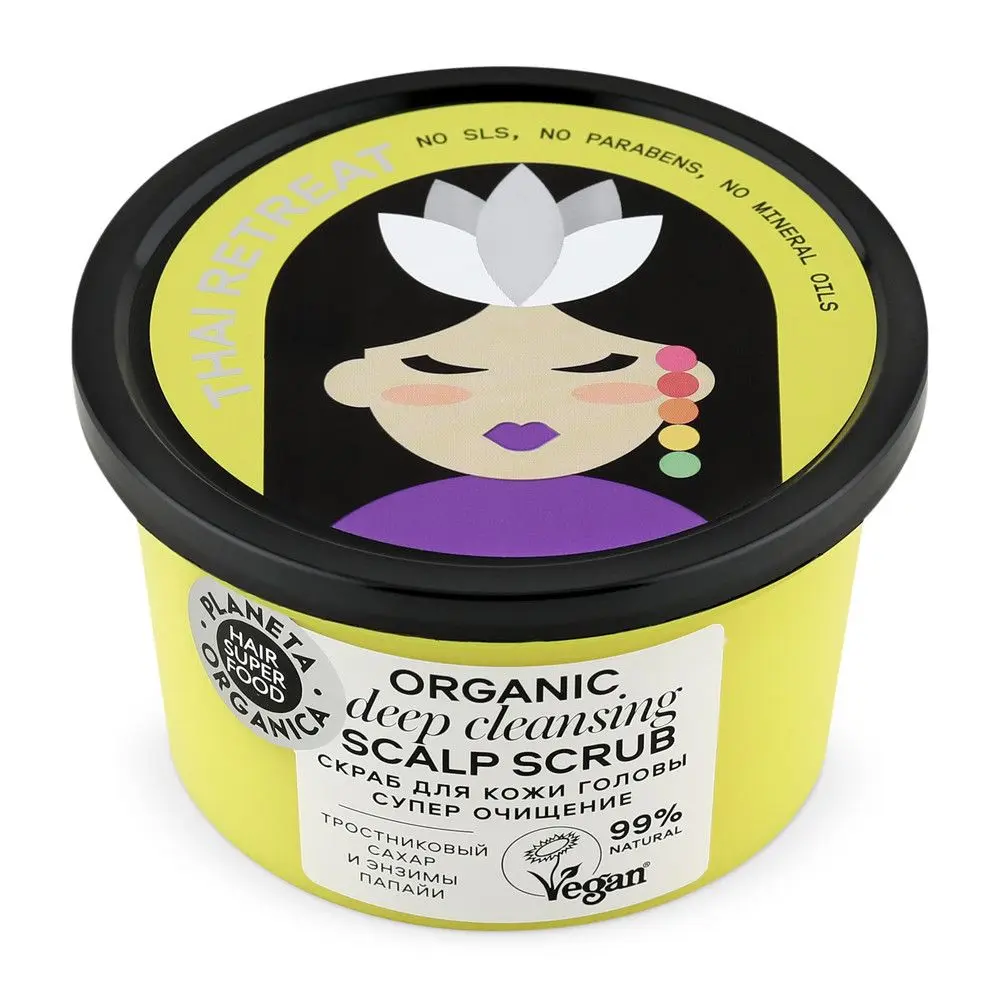 HAIR SUPER FOOD Натуральные коктейли здоровья и красоты, основанные на самых полезных ингредиентах со всего мира. Настоящее тайское spa – супер очищение для твоих волос. СКРАБ ДЛЯ КОЖИ ГОЛОВЫ СУПЕР ОЧИЩЕНИЕ - Улучшает дыхание клеток кожи головы - Обладает эффектом глубокого пилинга и обеспечивает природный детокс-эффект - Насыщает кожу кислородом и стимулирует рост здоровых волос Тростниковый сахар – суперфуд для волос и природный эксфолиант, содержит натуральные полисахариды и калий. Бережно очищает, отшелушивает и увлажня¬ет кожу головы. Энзимы папайи обеспечивают глубокое очищение и обновление кожи головы, придавая ощущение свежести и комфорта.