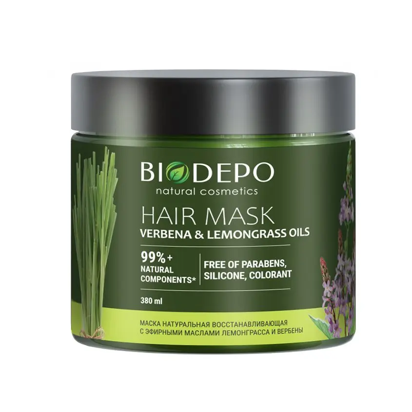 Biodepo маска для волос натуральная восстанавливающая с эфирными маслами лемонграсса и вербены 380 мл