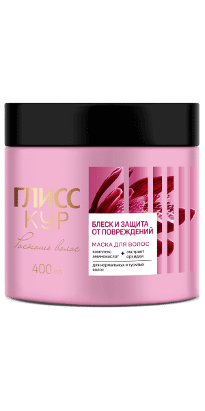 Маска Глисс Кур Роскошь волос «Блеск и защита от повреждений» идеально подходит для нормальных и тусклых волос. Формула с экстрактом орхидеи и комплексом аминокислот сохраняет красоту волос, возвращает естественный блеск и обогащает их. Позвольте себе роскошь волос от ГЛИСС КУР для ощутимого и видимого результата с 1-го применения.