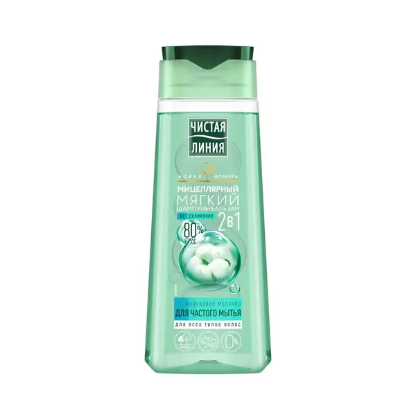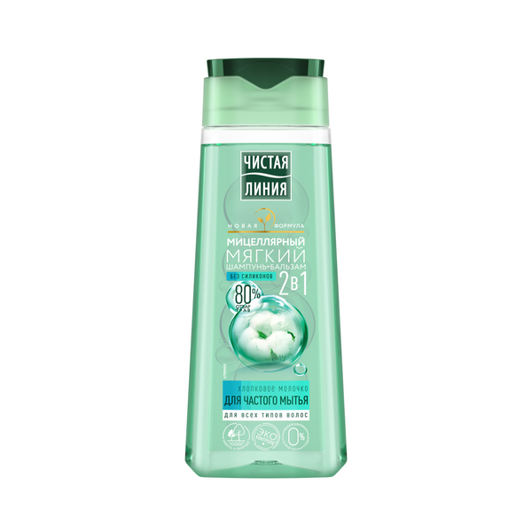 Чистая Линия шампунь бальзам мицеллярный мягкий для частого мытья 2в1 хлопковое молочко 250 мл