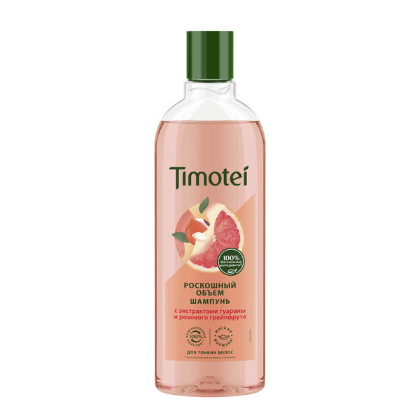 Новые шампуни от Timotei – идеальное сочетание заботы о красоте волос и природе! Попробуйте шампунь Роскошный Объем, который на 100% состоит из натуральных ингредиентов*, и отлично подходит для тонких и ослабленных волос. В составе продукта экстракты семян гуараны, розового грейпфрута, витамины В5‚ С, Е и ухаживающие компоненты. День за днем волосы наполняются жизненной силой, а также дополнительным объемом! Формула шампуня Роскошный Объем от Timotei содержит еще больше питательных компонентов для жизненной силы и превосходного внешнего вида ваших волос. При постоянном применении шампуня волосы вновь имеют ухоженный вид, естественный блеск, не так сильно грязнятся. Мягкая формула'' шампуня обладает легкой текстурой, не утяжеляет волосы, придает им удивительную мягкость и объем, отлично подходит для ежедневного использования. Нежный, сочный, фруктовый аромат подарит настоящее удовольствие во время мытья.
