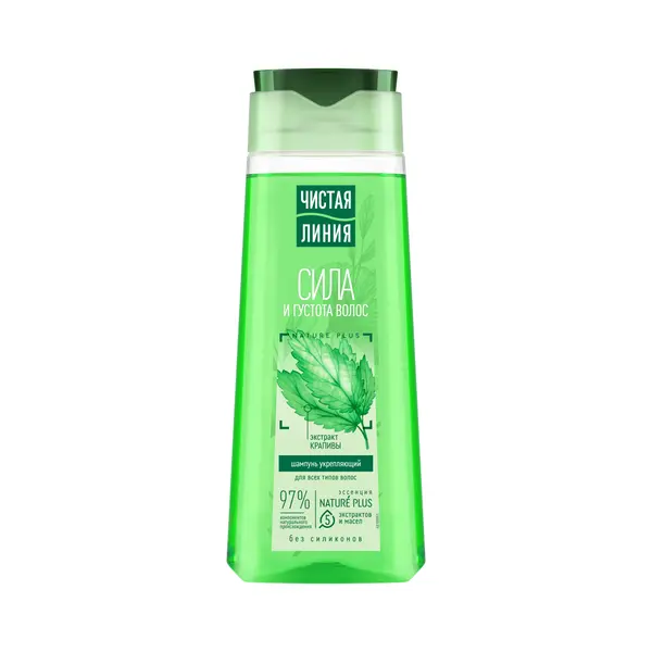 Встречайте любимый шампунь с усиленной формулой1 и в обновленном дизайне! Эксперты бренда Чистая Линия разработали укрепляющий шампунь на отваре целебных трав Крапива, который на 97% состоит из компонентов натурального происхождения и подходит для всех типов волос. Эссенция 5 Nature Plus – НЕЙЧЕ ПЛЮС из 5-и из тщательно отобранных по своим свойствам экстрактов и масел, предупреждает выпадение, питает и защищает волосы от повреждений. - Экстракт вербены обладает успокаивающим, общеукрепляющим действием. - Шалфей способствует питанию кожи головы, укреплению и росту волос*. - Экстракт шиповника, богатый витаминами и известный своими восстанавливающими свойствами, стимулирует рост волос*. - Масло льна питает, смягчает кожу и волосы. - Миндальное масло восстанавливает секрецию и придает здоровый блеск. - Листья крапивы, насыщенные витаминами, укрепляют корни волос и способствуют росту. Свойства шампуня подтверждены потребительским тестированием2. - 89% респондентов отметили, что после применения шампуня волосы на ощупь стали более густыми и плотными; - 78% – менее ломкими; - 75% – шампунь наполняет волосы силой по всей длине. Результат – естественно красивые, густые и крепкие волосы.