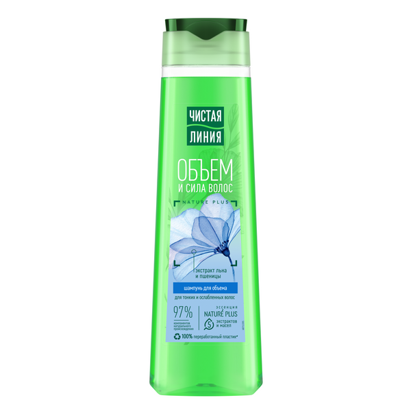 Чистая Линия шампунь объем и сила для тонких и ослабленных волос с экстрактами льна и пшеницы 400 мл