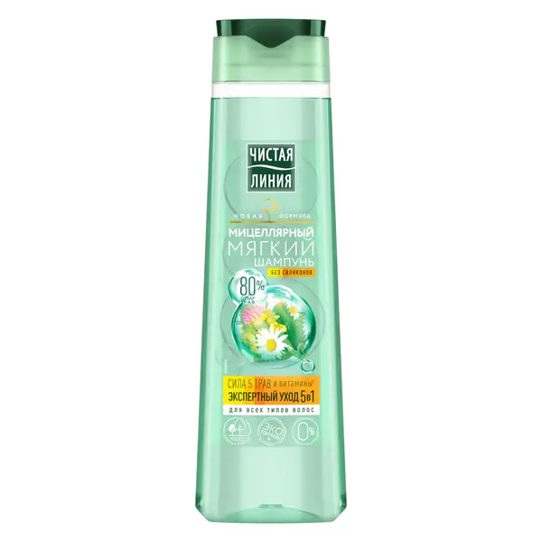 Шампуни и Бальзамы ЧИСТАЯ ЛИНИЯ со знаком ЭКОконтроль гарантируют экологическую чистоту и пользу входящих трав. Травы в составе продуктов ЧИСТАЯ ЛИНИЯ имеют паспорт качества и проходят многоступенчатый контроль экологической чистоты. ЧИСТАЯ ЛИНИЯ гарантирует эффективность: следит за соблюдением уровня активных веществ, использует только самые эффективные части растений, занимается клиническими исследованиями отвара трав. Эксперты Института Чистая линия создали коллекцию инновационных средств по уходу за волосами на мицеллярной основе. Они не раздражают чувствительную кожу головы, сохраняют ее гидролипидный баланс и не пересушивают волосы, даже при ежедневном мытье. Мицеллярный шампунь создан для мягкого очищения волос без сухости, 5 действий в 1 шампуне. Мицеллярная основа бережно очищает и увлажняет волосы, не повреждая даже истонченные кончики длинных волос, полезная формула 80% отвара трав наполняет волосы силой, ФИТОвитамины придают блеск и мягкость Подходит для всех типов волос.