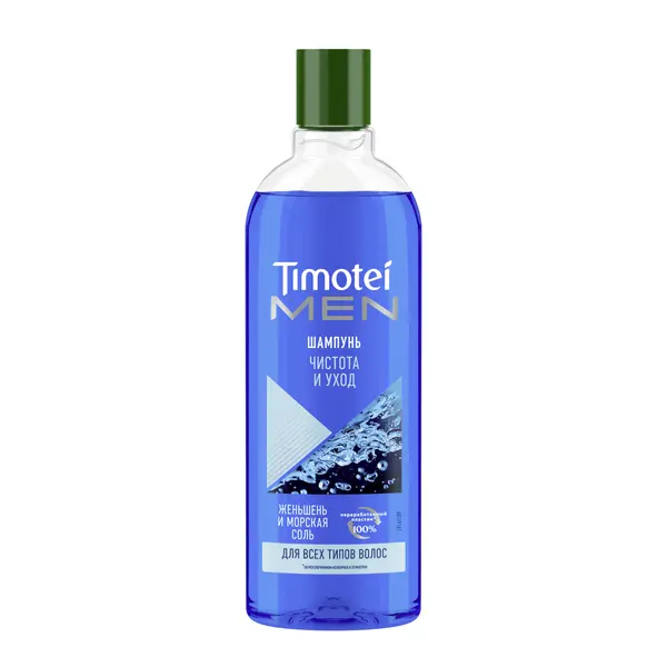 Новые шампуни Timotei Men – это настоящая мужская забота о волосах и природе! Timotei Men знает, в чем сила настоящего мужского ухода. Формула шампуня Чистота и Уход с женьшенем и морской солью разработана специально для ухода за мужскими волосами, с учетом потребностей кожи головы и волос. Как известно, мужской и женский уходы отличаются. Кожа головы мужчин больше нуждается в защите и очищении, потому что активнее работают сальные железы. Шампунь эффективно очищает волосы и кожу головы, сохраняя чувство свежести и чистоты надолго! Свежий аромат зарядит энергией и подарит ощущение чистоты и свежести в течение всего дня. 0% парабенов и силиконов, – ничего лишнего для ухода за мужскими волосами. Подходит для ежедневного ухода за волосами. Здоровый внешний вид волос день за днем. Бескомпромиссно.