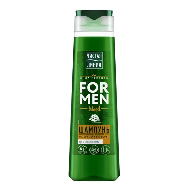 Чистая Линия for men шампунь укрепляющий wood сила и свежесть для всех типов волос дуб и масло конопли 400 мл