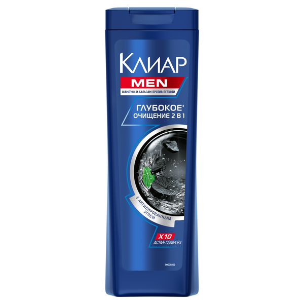 Клиар Глубокое очищение — мужской шампунь и бальзам против перхоти 2 в 1 с активированным углем. Средство помогает бороться с жирностью волос и кожи головы, оказывает ухаживающее действие и обеспечивает видимый результат: ГЛУБОКОЕ ОЧИЩЕНИЕ, ДО 100% ЗАЩИТЫ ОТ ПЕРХОТИ! Добавьте мужской шампунь от перхоти Клиар в свою программу ухода за волосами и кожей головы, чтобы насладиться свежестью прической и эффектностью: - Шампунь против перхоти для мужчин эффективно очищает избытки себума, загрязнения и удаляет жирность, не пересушивая кожу головы и волосы. - Противоперхотный компонент пироктон оламин оказывает антибактериальный эффект, помогая бороться с перхотью, шелушением и шелушением. - Глицин и витамин В3 питают кожу головы, активированный уголь и другие активные компоненты способствуют глубокому очищению. - Средство сочетает в себе сразу два уходовых средства: шампунь для мужчин и бальзам-ополаскиватель для волос. - Шампунь от перхоти мужского пола обладает ярким аква-древесным ароматом. - Средство новой гелевой формулы действует еще быстрее. Шампунь и бальзам Клиар Глубокое очищение подходят для всех типов волос.