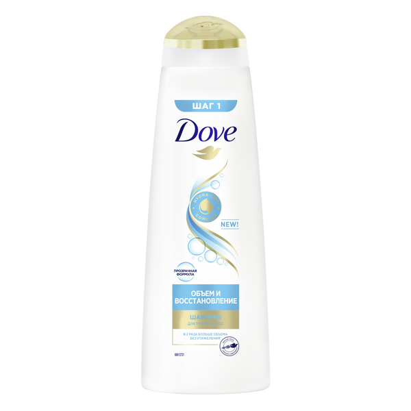 Серия Dove Hair Therapy Объем и восстановление сделает ваши волосы в два раза объемнее*, не утяжеляя их! Продукты серии специально разработаны с учетом потребностей тонких и ослабленных волос. Шампунь Объем и восстановление работает сразу в 2-х направлениях, чтобы максимально наполнить жизненной силой тонкие и потерявшие жизненную силу волосы. Уникальная** невесомая формула с комплексом Hydra-Lift придает волосам дополнительный объем, воздействуя от самых корней, при этом мягко питает их. Формула шампуня эффективно действует на всей поверхности волоса, мгновенно разглаживая его, поддерживает необходимый уровень питания и дополнительного увлажнения. Данная технология позволит вашим волосам выглядеть гладкими, объемными и ухоженными! Благодаря формуле деликатного очищения шампунь Dove Объем и восстановление идеально подходит для ежедневного использования.