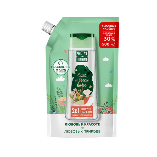 Чистая Линия шампунь бальзам 2в1 сила и блеск волос на отваре целебных трав без силиконов 500 мл