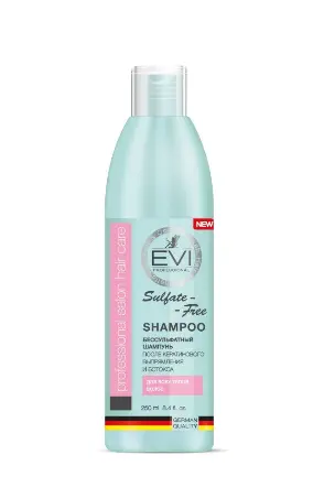 EVI professional, Шампунь "Бессульфатный" Активный комплекс для окрашенных волос, 250 мл. Шампунь EVI professional «Бессульфатный» после кератинового выпрямления и ботокса, для окрашенных волос, 250 мл специально разработан для бережного ухода за окрашенными и мелированными волосами. Богатый по составу шампунь без сульфатов и парабенов бережно очищает, питает волосы и кожу головы, эффективно удаляя все загрязнения.