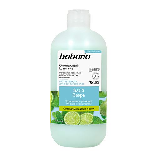 Шампунь для волос Babaria против перхоти. Эффективно очищает, успокаивает, тонизирует и увлажняет кожу головы. В состав шампуня входят ухаживающие компоненты. Экстракт листьев мяты избавляет от зуда, кожных воспалений, укрепляет волосяные луковицы, регулирует жирность эпидермиса. Цинк стимулирует регенерацию клеток и синтез коллагена, нормализует работу сальных желез, оказывает противовоспалительное и антиоксидантное действие.Шампунь устраняет перхоть и предотвращает ее последующее появление. Подходит для всех типов волос.