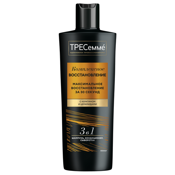 Доверяй свои волосы только профессионалам: не только во время окрашивания и уходовых процедур в салоне, но и дома. Попробуй бескомпромиссную новинку от TRESemmé для качественного и эффективного восстановления волос, которое не займет много времени. Скорая SOS-помощь для безжизненных волос c TRESemmé Complex Repair! Всего одно средство с формулой интенсивного шампуня-кондиционера с кератином работает сразу в 3-х направлениях: • Эффективно очищает; • Разглаживает поверхность волос и питает их; • Интенсивно восстанавливает и укрепляет волосы изнутри, значительно сокращая их ломкость^. Видимый эффект уже через 30 секунд. Результат: волосы выглядят здоровыми и блестящими от корней до кончиков! На пути к безупречному образу и роскошным волосам начни с восстанавливающего шампуня, кондиционера и средства для восстановления волос. На чистые волосы нанеси спрей для защиты от повреждений во время укладки. Профессионалы уверены: каждая укладка зависит от качества волос.