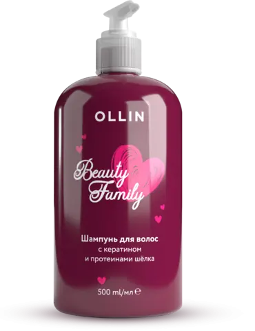 OLLIN BEAUTY FAMILY шампунь для волос с кератином и протеином шёлка 500мл
