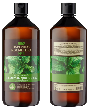 Народная косметика № 1 крапивный шампунь для укрепления волос 1000 мл