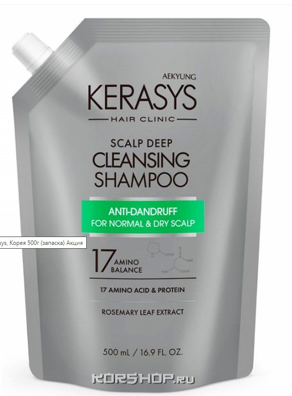 KeraSys шампунь для лечения кожи головы освежающий 500г запаска