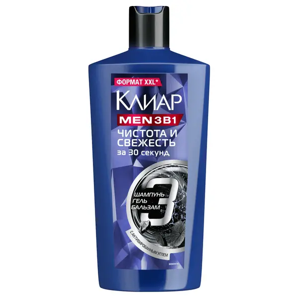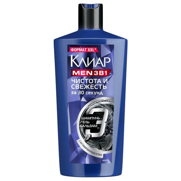 Клиар 3в1 Свежесть — шампунь против перхоти, бальзам-ополаскиватель для волос и гель для душа мужской в XXL-формате’. Шампунь 3 в 1 с новой гелевой формулой с активированным углем и пироктон оламином эффективно очищает, оказывает ухаживающее действие и дарит видимый результат: МАКСИМАЛЬНАЯ СВЕЖЕСТЬ ДЛЯ ВОЛОС И ТЕЛА’’, ДО 100% ЗАЩИТЫ ОТ ПЕРХОТИ’’’. Добавьте шампунь мужской Клиар в свою ежедневную программу ухода и заряжайтесь ультра свежестью на весь день: - Шампунь и бальзам для волос действует мгновенно: средство смывает загрязнения и бактерии с кожи головы всего за 30 секунд. - Шампунь мужской от перхоти не сушит, а питает кожу головы и волосы благодаря содержанию ухаживающих компонентов. - Пироктон оламин в составе мужского шампуня оказывает антибактериальный эффект, избавляет от перхоти’’’, зуда и шелушения’’’’. - Активированный уголь и другие активные ингредиенты шампуня для мужчин обеспечивают качественное очищение. - Глубокий ориентально-древесный аромат превращает уход в настоящее удовольствие. Шампунь Клиар Свежесть в большом объеме 650 мл — отличный выбор для комплексного ухода за волосами, кожей головы и телом. Флакона средства хватит надолго: наслаждайтесь красивой опрятной прической, чувствуйте свежесть на протяжении всего дня и не беспокойтесь о перхоти!