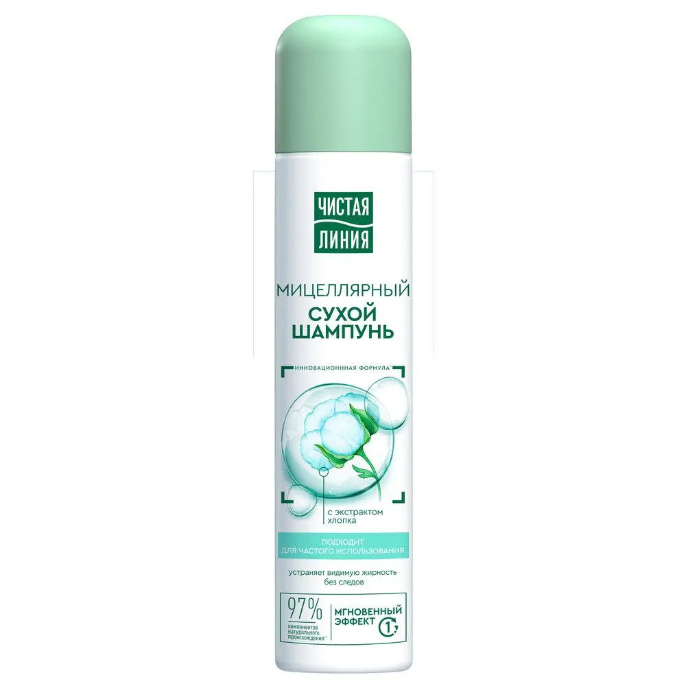Мицеллярный сухой шампунь Чистая Линия с экстрактом хлопка — это незаменимое косметическое средство для легкого и эффективного очищения волос без воды и душа. Женский уходовый продукт разработан специально для женщин и девушек, для мужчин и подростков с 14 лет. Он подходит для всех типов волос: для темных и светлых, для кудрявых и вьющихся, для окрашенных и жирных. Косметическое средство эффективно удаляет излишки себума с корней и кожи головы, не оставляя следов, мгновенно придает ощущение чистоты и свежести.