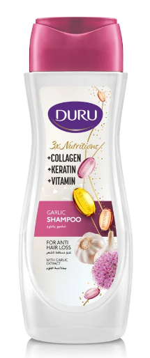 Шампунь DURU с экстрактом чеснока помогает предотвратить выпадение волос, придает экстра сияние и мягкость.
