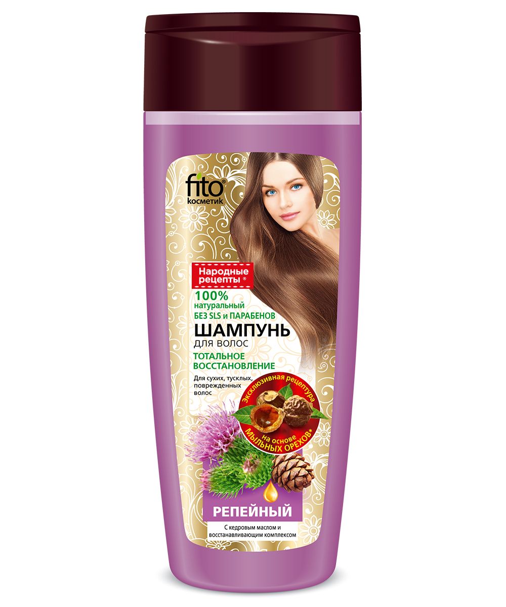 Инновационная рецептура шампуня на основе натуральных мыльных орехов мягко и бережно очищает волосы и кожу головы, полностью восстанавливает их структуру, делает волосы гладкими, послушными, придает им живой и насыщенный цвет. Репейное масло глубоко проникает в поврежденные участки волос, питает, укрепляет и уплотняет волосы. Кедровое масло насыщает полезными веществами и микроэлементами, укрепляет корни, стимулирует рост волос. Растительный восстанавливающий комплекс, обволакивая каждый волос, сглаживает и запаивает все повреждения, делает волосы эластичными, густыми, прочными и здоровыми.