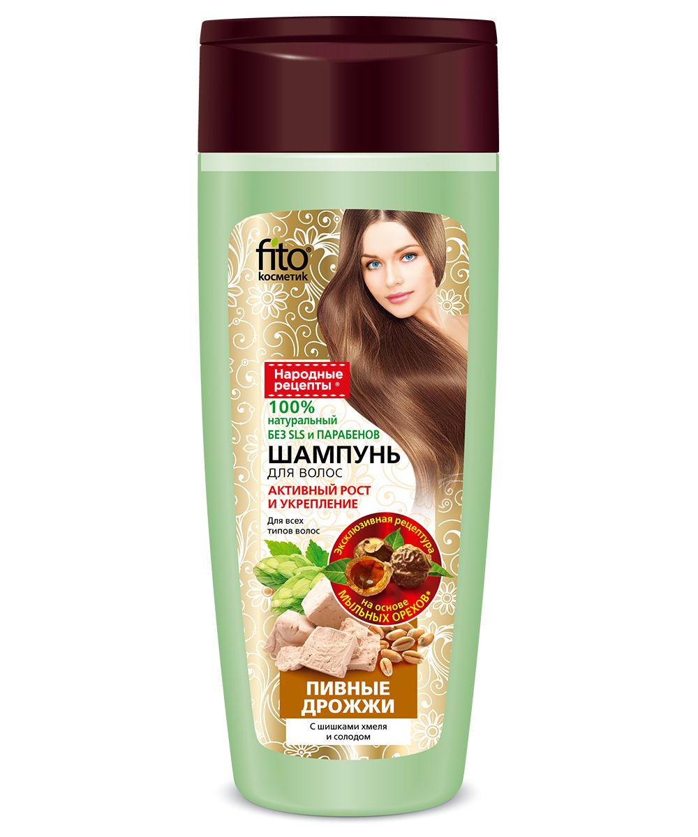 Инновационная рецептура шампуня на основе натуральных мыльных орехов мягко и безопасно очищает волосы, увлажняет и смягчает кожу головы, придает волосам естественный блеск и пышность, здоровый и ухоженный вид. Пивные дрожжи укрепляют волосы, стимулируют их быстрый рост, придают мягкость и шелковистость. Хмель улучшает структуру волос, дарит объем и сияние. Солод делает волосы гладкими и прочными.
