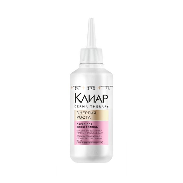 Чтобы восстановить тонкие, ослабленные и склонные к выпадению волосы, попробуйте продукты серии Derma Therapy Энергия роста. 1-2 раза в неделю перед мытьем волос шампунем серии, нанесите скраб по проборам на кожу головы, помассируйте пару минут и смойте. Продукт легко нанести и смыть, благодаря пенящейся формуле. Формула скраба с 3.7% коллагена² и 3% витамина В3² увлажняет и укрепляет волосы от корней¹. 4% Минеральные гранулы бережно очищают и отшелушивают.