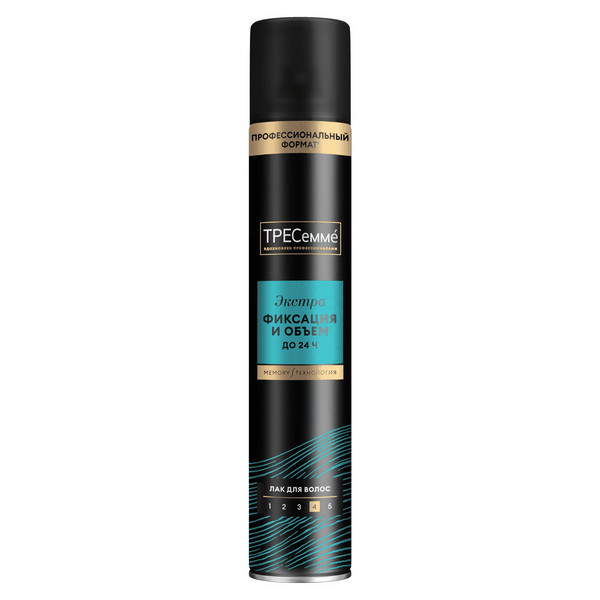 Лак для волос ТРЕСеммé Экстрасильная фиксация и объем представляет собой продукт, созданный с учетом профессиональных решений в области стайлинга. Благодаря своей легкой сухой текстуре и мощному действию, это средство для укладки волос обеспечивает надежную фиксацию прически и воздушный прикорневой объем на целых 24 часа. Он идеально подходит для создания укладок любой сложности. Новый профессиональный формат' флакона объемом 400 мл позволяет экономично расходовать средство, что гарантирует его длительное использование. С лаком для волос от ТРЕСеммé ты сможешь создавать неповторимые образы, будучи уверенной в стойкости и надежности своей укладки! Лак для волос сильной фиксации разработан с использованием уникальной* MEMORY-технологии, которая запоминает форму прически на весь день. Стайлинг для волос надежно фиксирует прическу всего в несколько пшиков и сохраняет воздушный объем от самых корней до 24 часов. Его особая* формула стойко закрепляет прикорневой объем. Спрей для укладки волос сохраняет подвижность и упругость укладки — волосы держат желаемую форму и при этом выглядят объемными. Фиксатор для волос для укладки подходит для закрепления объема и моделирования прически у женщин-обладательниц кудрявых, вьющихся, тонких и пористых локонов.