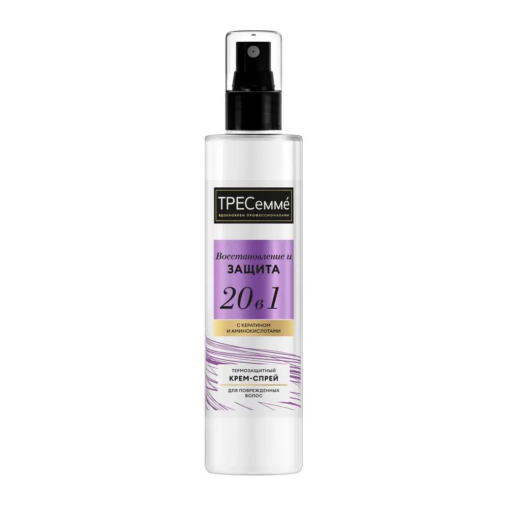Уникальная формула продукта ТРЕСЕММЕ предлагает вам 20 незаменимых для волос свойств. Средство восстанавливает структуру волос, а также защищает их от термовоздействия до 230 °С'. Термозащитный спрей сокращает ломкость волос и количество секущихся кончиков. Спрей облегчает расчесывание и укладку волос, обладает антистатическим эффектом и защищает пряди от повреждений.