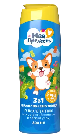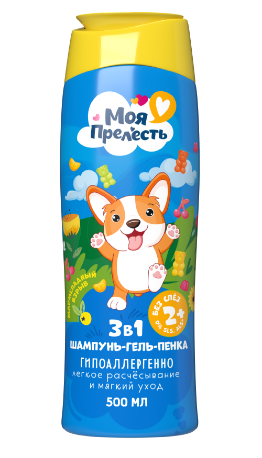 Шаммпунь-гель-пенка 3в1 для купания Моя Прелесть создана специально для нежной детской кожи и волос, требующих особого и бережного ухода. Благодаря мягкой и воздушной пене, она нежно очищает кожу и волосы ребенка, не нарушает физиологию кожного покрова и не щиплет галзки.
