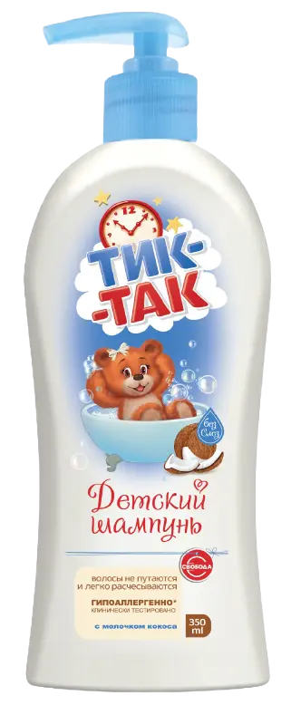 Детский шампунь Тик-так с молочком кокоса укрепляет волосы и делает их мягкими и шелковистыми.