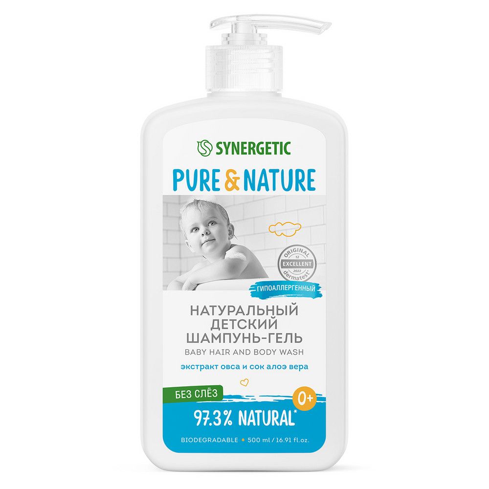 Synergetic натуральный гипоаллергенный детский шампунь гель для волос и тела 0+ без слез 500 мл