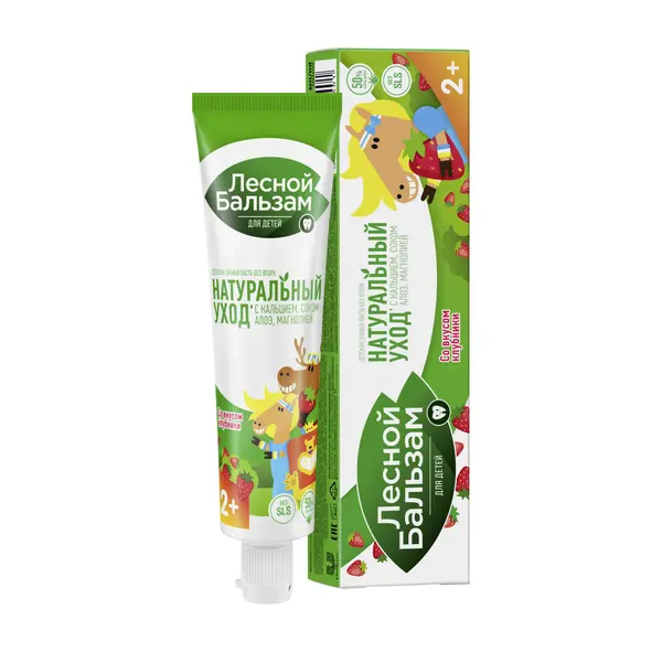 Детская зубная паста Лесной бальзам с 2 лет отличается высокими содержанием сока алоэ (50%), содержит кальций для правильного созревания эмали молочных зубов и поддерживает иммунитет полости рта*. Создана совместно с детскими стоматологами, чтобы сделать процесс первой чистки зубов малышка максимально комфортным. Особенности состава: 1) Мягкая абразивная система бережно очищает детскую эмаль, способствует мягкому удалению налета с молочных зубов. 2) Зубная паста имеет самый нейтральный, нежно клубничный вкус, чтобы сделать процесс первой чистки зубов максимально комфортным. 3) Для защиты от бактерий в зубной пасте используется натуральный антибактериальный комплекс на основе экстракта коры магнолии, который нейтрализует действие кислот в полости рта, замедляет образование налета и защищает от кариеса. 4) Зубная паста содержит 50% сока алоэ и оказывает успокаивающее действие на десны, что полезно в период прорезывания зубов 5) Зубная паста содержит кальций для укрепления эмали и не содержит фтор, безопасна при случайном проглатывании 6) без SLS, безе SLES 7) Зубная паста для детей Лесной бальзам 2+ разработана совместно со стоматологами и протестирована на кафедре детской стоматологии, не оказывает раздражающего или токсического воздействия на полость рта.
